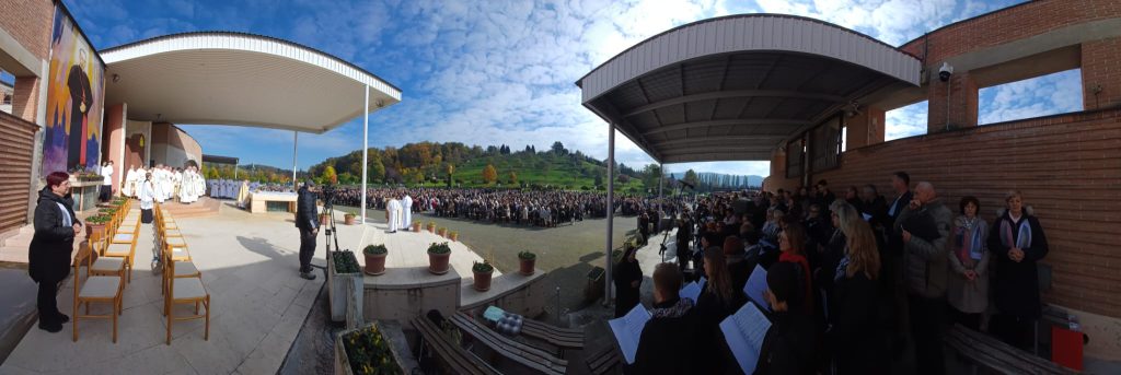 Marija Bistrica, 18. listopada 2025. — U Nacionalnom svetištu Majke Božje Bistričke održan je 12. Nacionalni susret štovatelja Božjega milosrđa, koji je i ove godine okupio brojne hodočasnike iz cijele Hrvatske. Središnje euharistijsko slavlje u 11 sati predvodio je mons. Franjo Komarica, banjolučki biskup u miru, u zajedništvu s oko trideset svećenika.